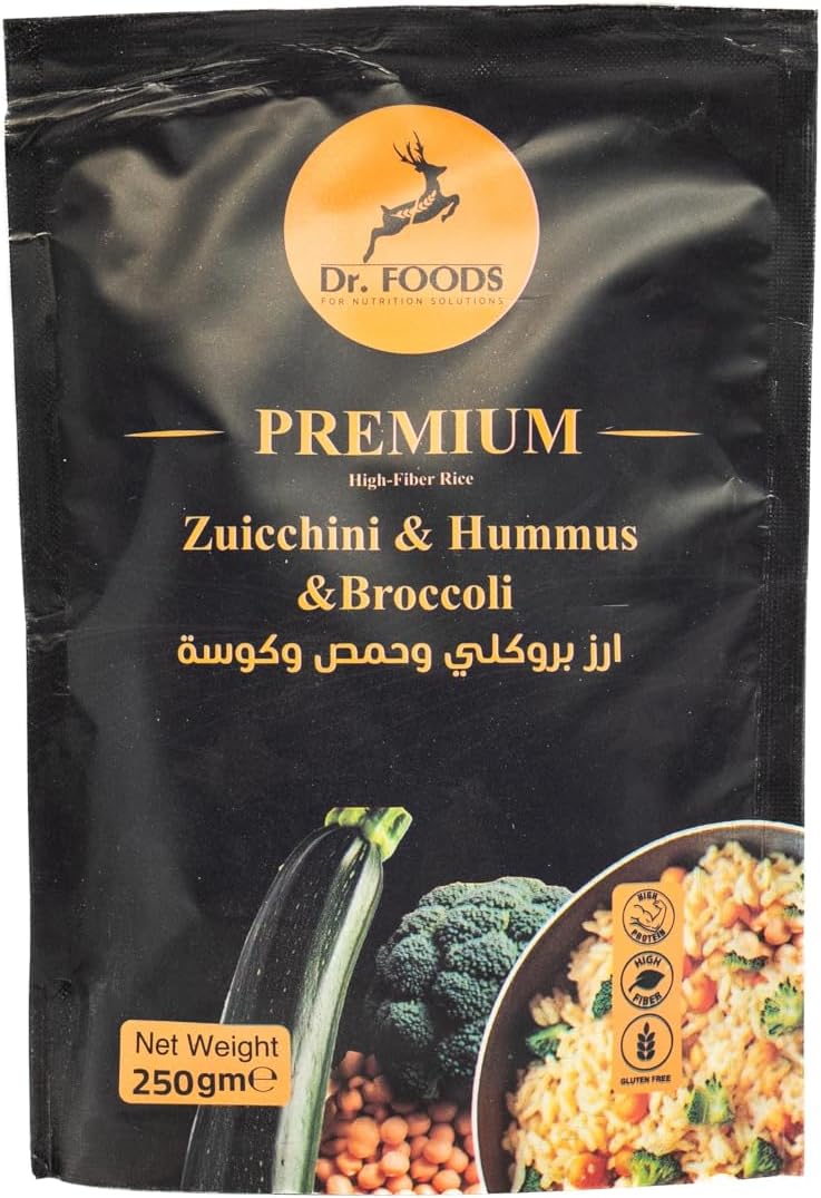 حوّل وجباتك مع بديل أرز الكوسة والحمص والقرنبيط بريميوم – 250 جم من Dr. Foods 🌿. مزيج نباتي متوازن عالي البروتين والألياف جاهز خلال دقائق. 👉 اطلبه الآن واستمتع ببديل صحي ولذيذ للأرز التقليدي!