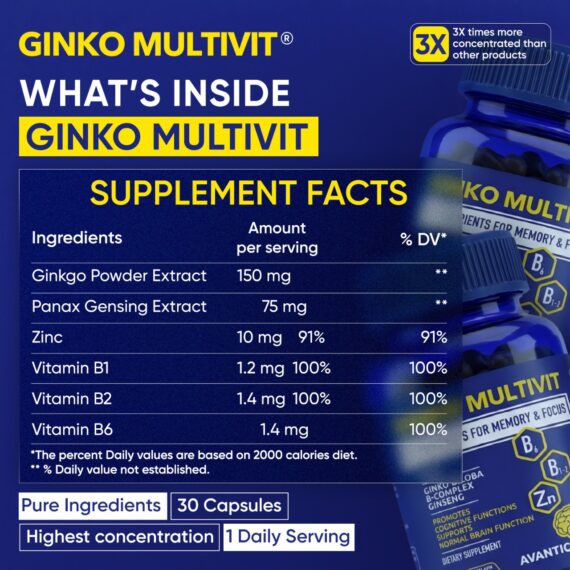 يتميز جينكو مالتي فيت عن المنتجات الأخرى بتركيزه الفعال. تحتوي كل كبسولة على 150 ملغ من خلاصة الجنكة بيلوبا النقية، مما يضمن الحصول على الجرعة اللازمة للمساعدة في تعزيز الدورة الدموية الدماغية وتحسين إمداد الأكسجين إلى الخلايا العصبية.