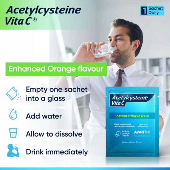 Acetylcysteine Vita C by Avantic is a dual-action effervescent formula that supports lung detox and immune system strength.