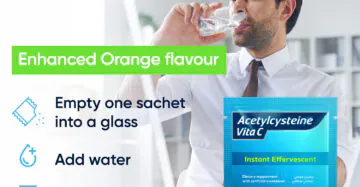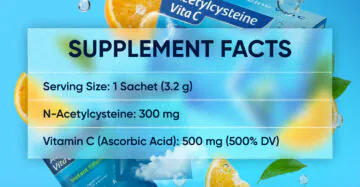 Each sachet combines 300mg N-Acetylcysteine (NAC), a clinically proven mucolytic and antioxidant, with 500mg Vitamin C, known for its immune-boosting and anti-fatigue effects.