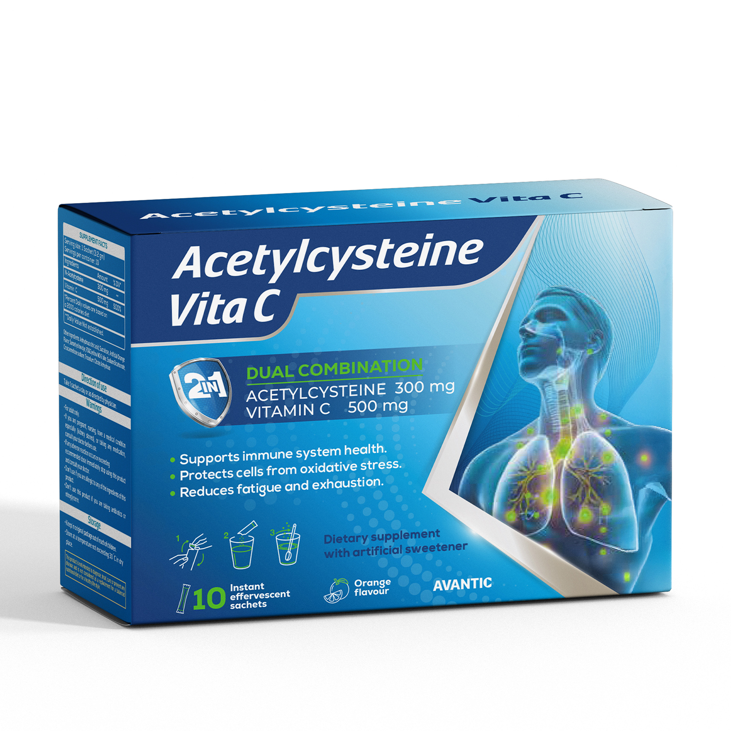 Acetylcysteine Vita C by Avantic is a dual-action effervescent formula that supports lung detox and immune system strength.