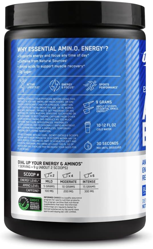 Amino Energy Optimum Nutrition is one of the most versatile products for athletes and fitness enthusiasts. It combines essential amino acids (EAAs including BCAAs) with natural caffeine from green tea and coffee beans, delivering a dual-effect formula: