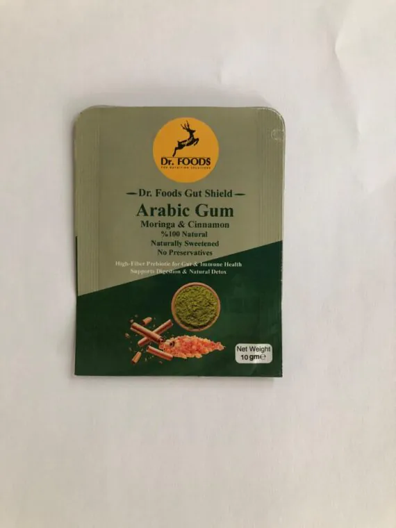 Arabic Gum Moringa & Cinnamon Mix – 15 Sachets by Dr. Foods is a 100% natural herbal blend rich in fibre and prebiotics. Supports digestion, immunity, and daily wellness with a pleasant herbal taste.