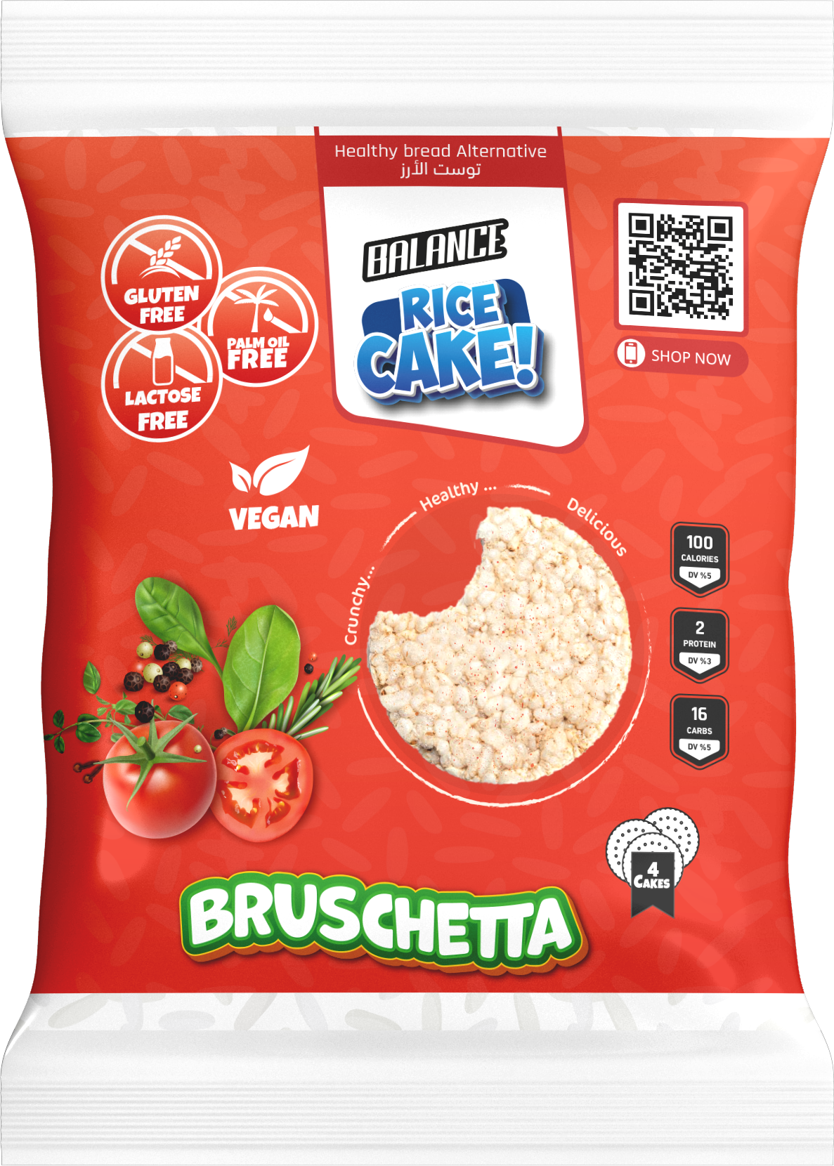 Balance Tomato Bruschetta Rice Toast Gluten-Free Vegan Rice Snack-بالانس توست الأرز بطعم الطماطم بروشيتا سناك صحي خالي من الجلوتين