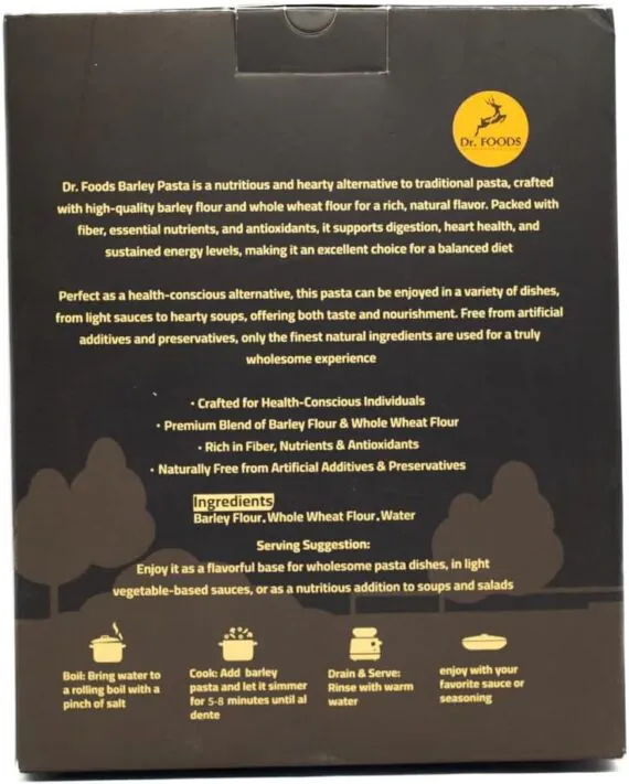 When it comes to healthy eating, the choice of staple foods makes a huge difference. Premium Barley Pasta – 400g by Dr. Foods combines rich taste, natural ingredients, and wholesome nutrition in one pack. Made from a premium blend of barley flour and whole wheat flour, this pasta is not only delicious but also packed with dietary fiber, essential minerals, and plant-based protein. For anyone who is health-conscious, fitness-oriented, or simply seeking a better alternative to refined pasta, this option brings balance to your daily meals without compromising on flavor.