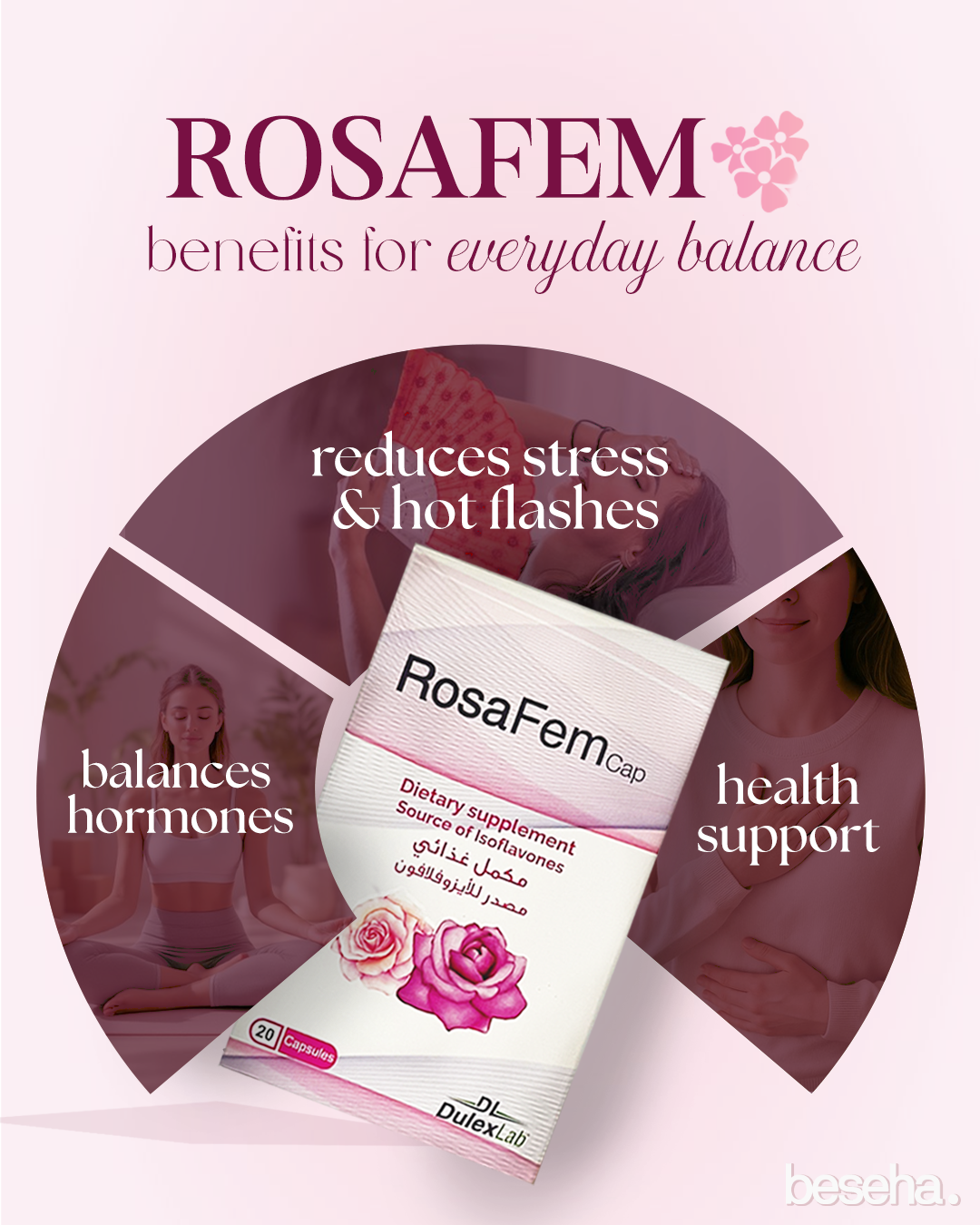 RosaFem (20 Capsules) is a plant-based dietary supplement containing Isoflavones – natural phytoestrogens that may support hormonal balance and women’s health.